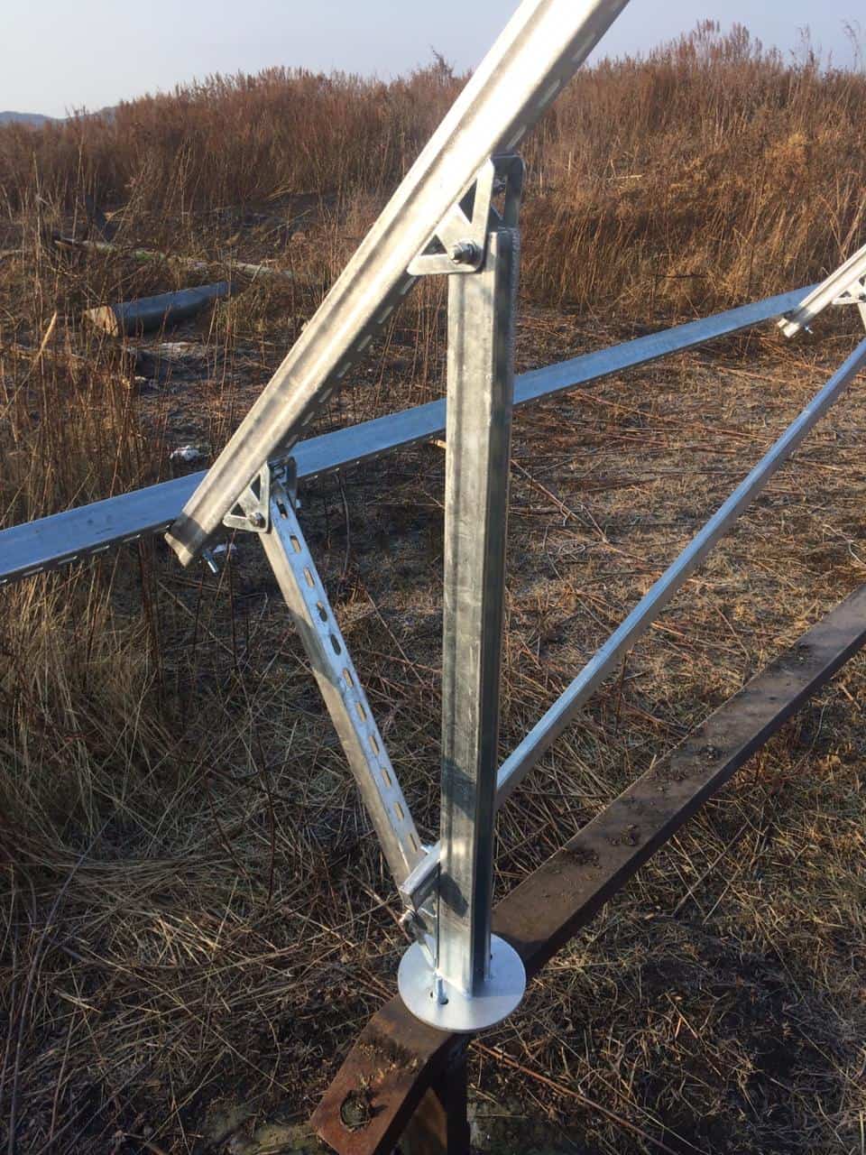 Данный комплект предназначен установки солнечных батарей на земле в один ряд под углом 45 градусов к горизонту (с двумя рядами опорных ног ).